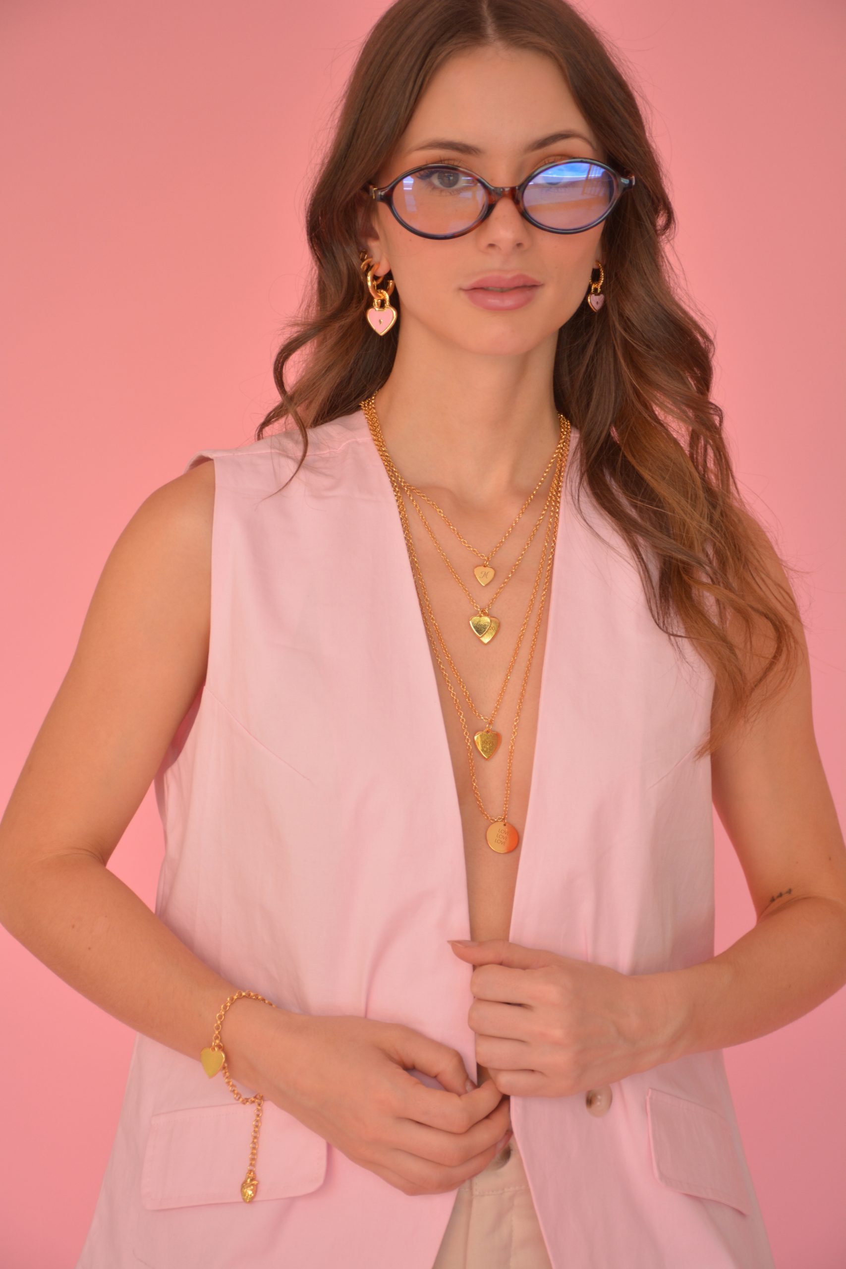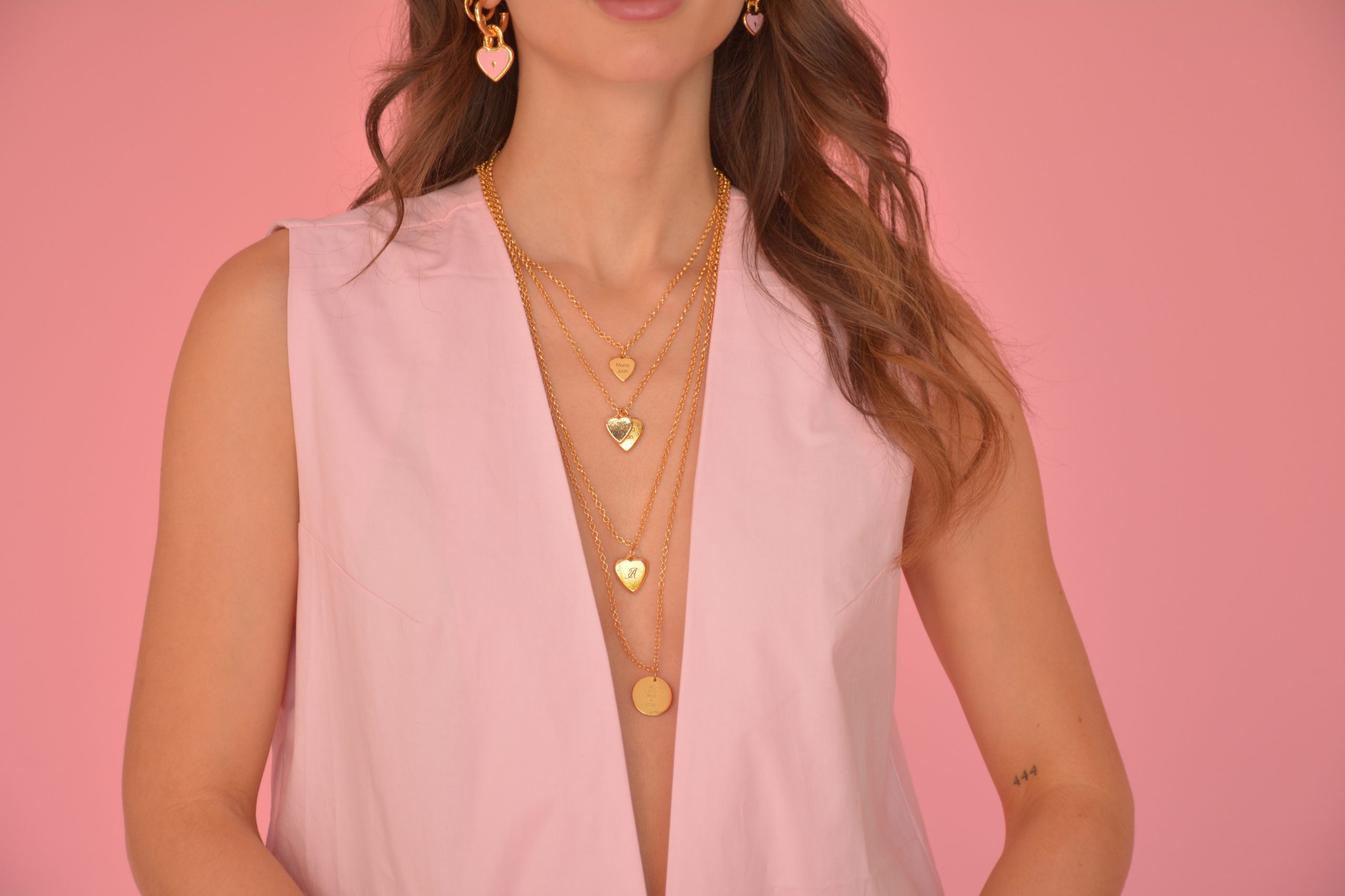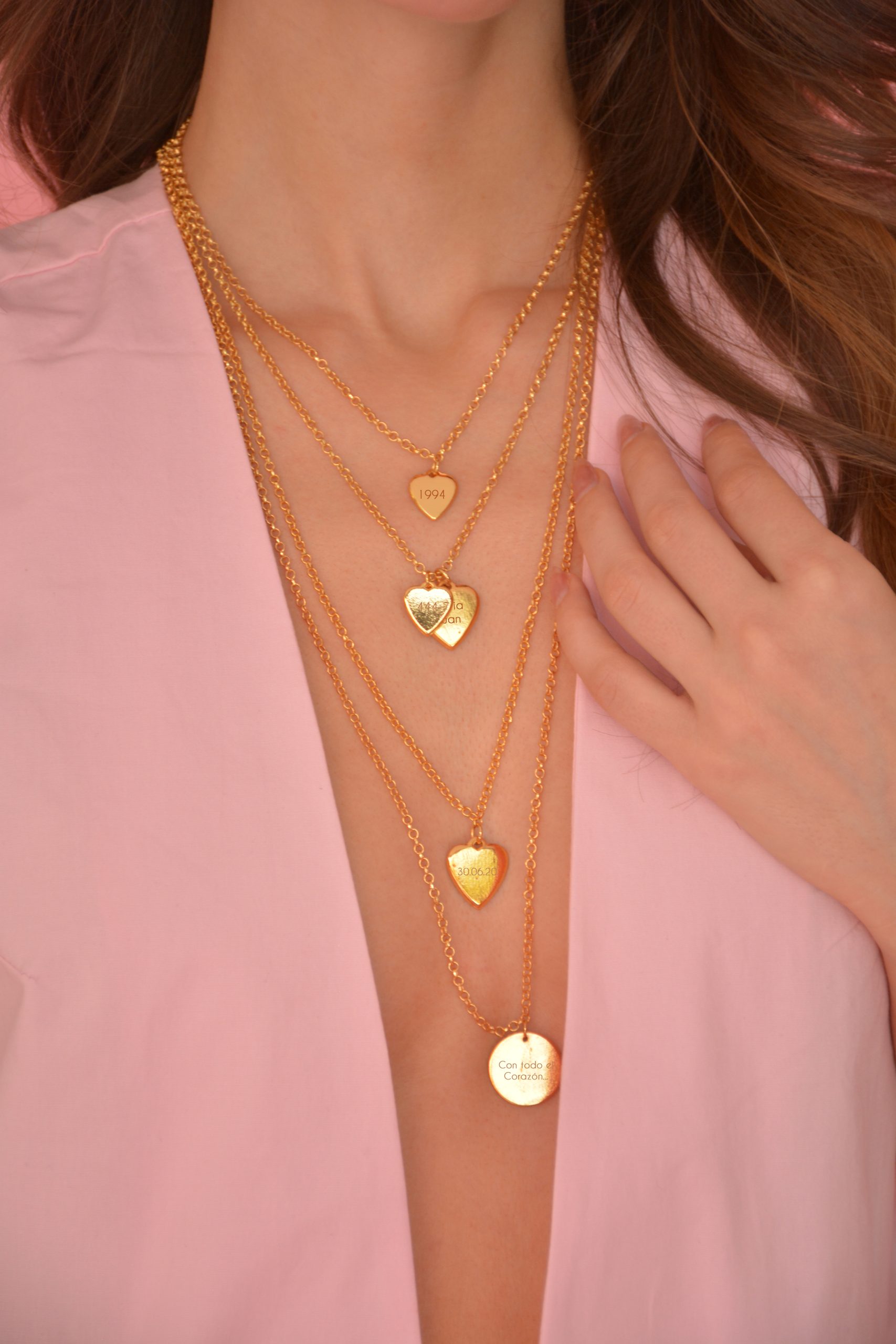 Cadena delgada con dije de plaquita de corazón maxi, divino para ocasiones especiales o para regalar a tus personas mas especiales.